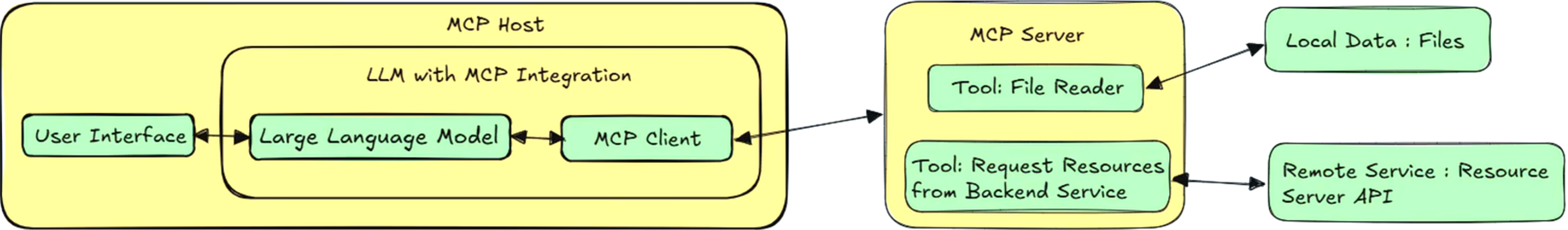 MCP 遵循客户端-服务器架构,其中包含以下几个核心概念