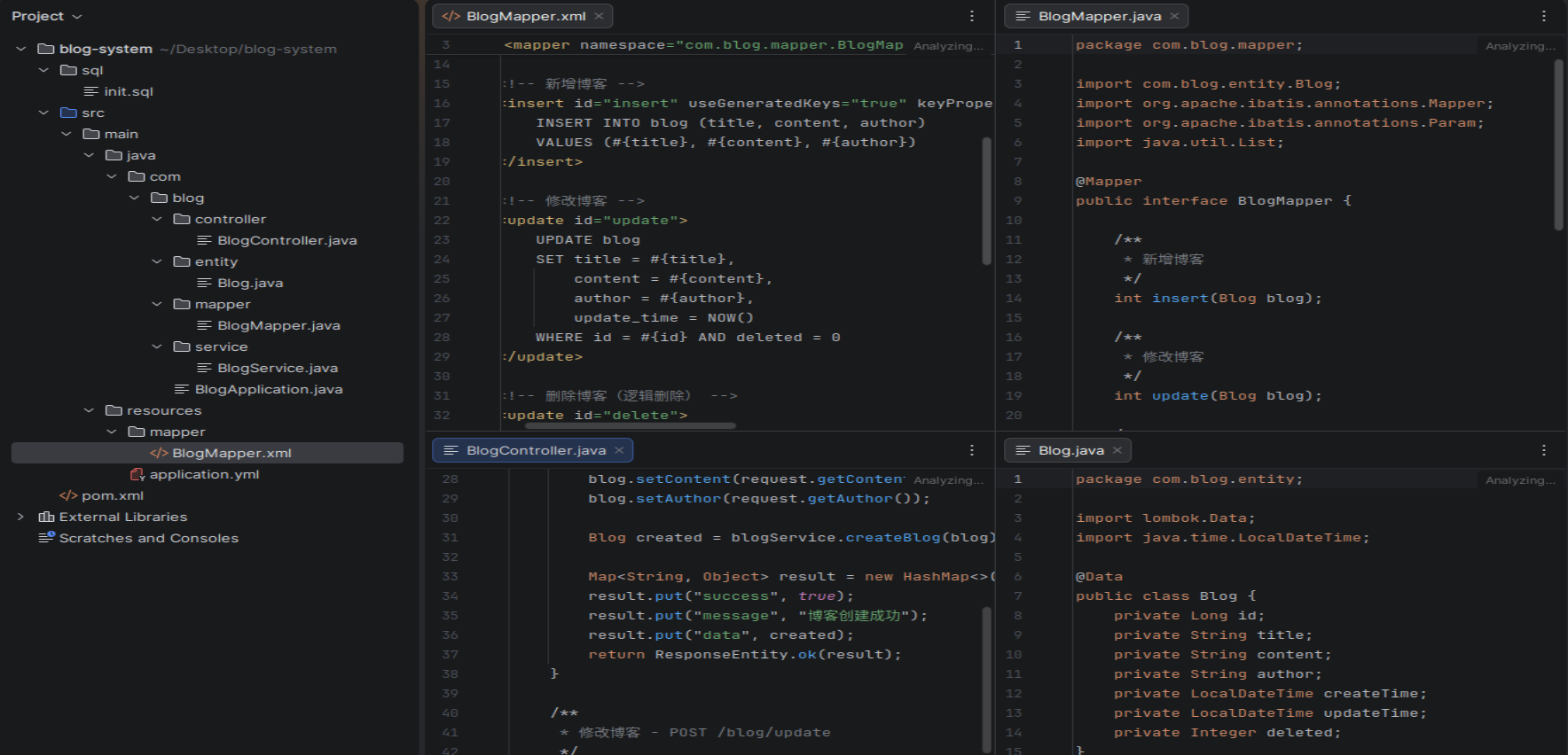 我要实现一个博客系统,这个系统的功能包括