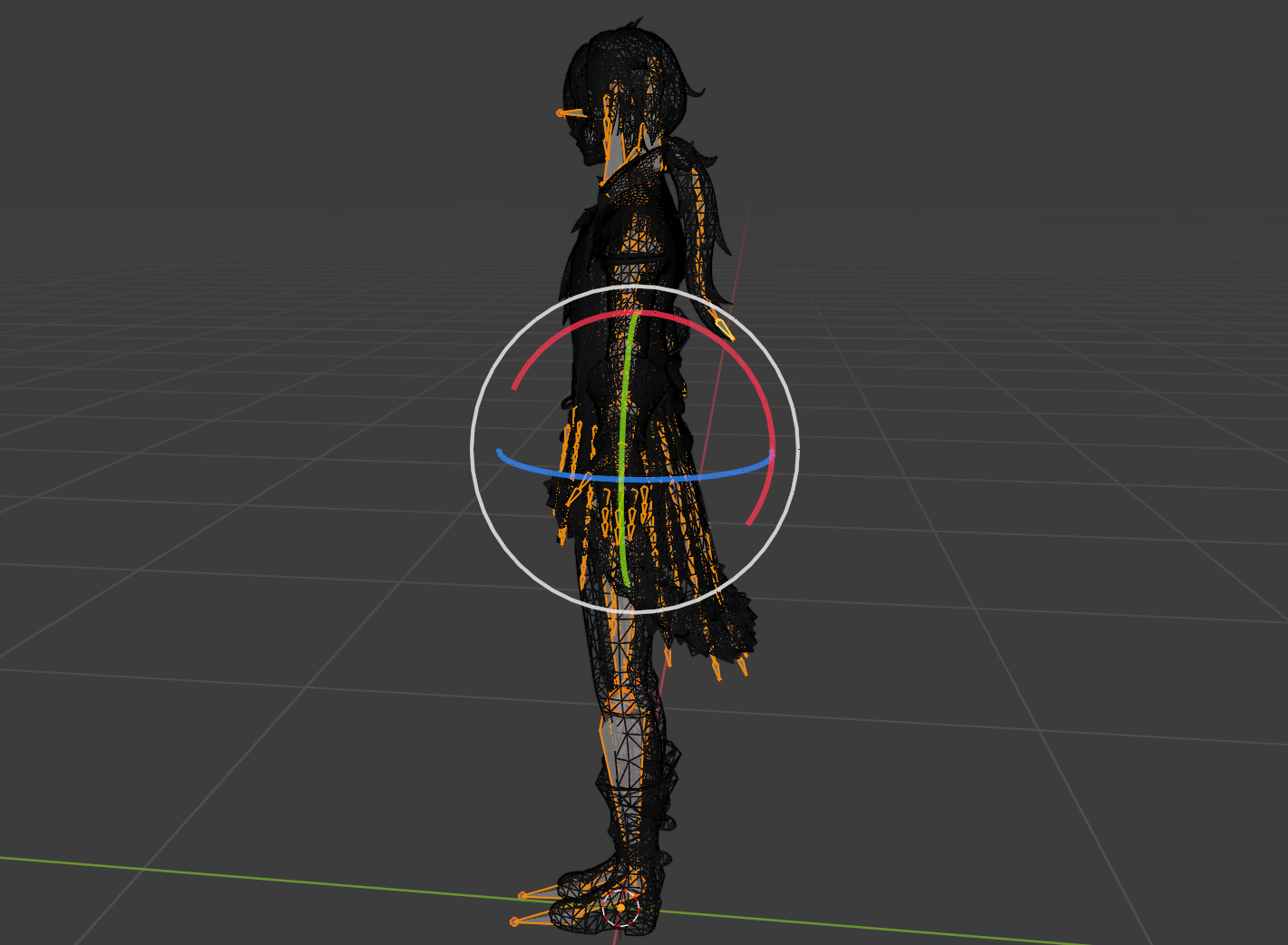本次演示使用的模型的骨骼如下所示(头发和衣服上都是有骨骼的):