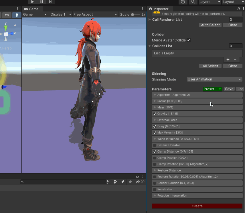 Magica Cloth 是基于Unity Job System 和Burst 编译器进行快速布料模拟,可以实现由骨骼(变形)驱动的BoneCloth 和由网格驱动的MeshCloth