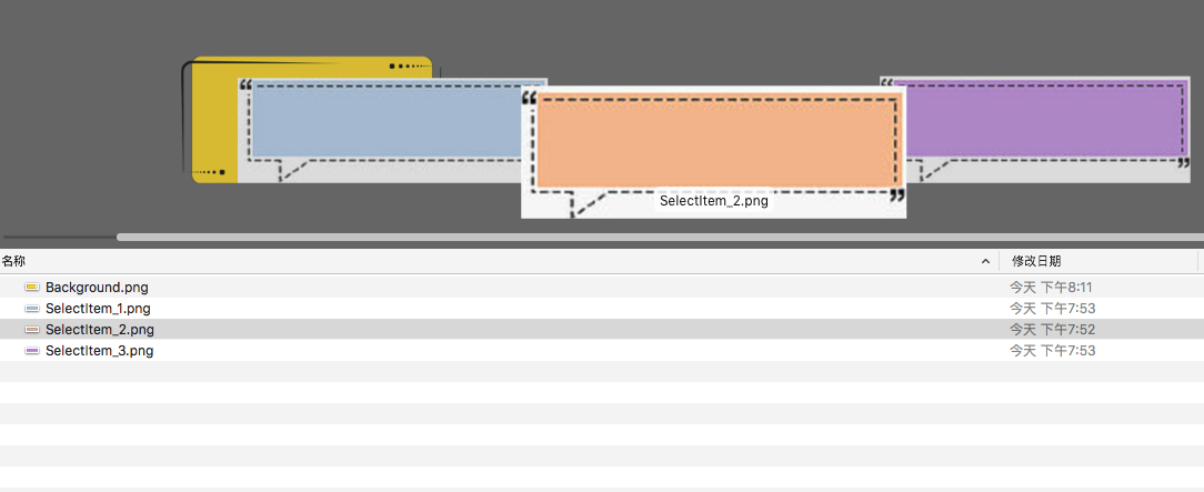 本项目使用到的素材包括,一个对话框图片(如上图)、三个用于按钮不同状态下的图片(如下图)