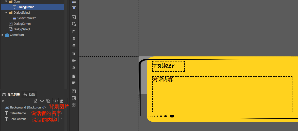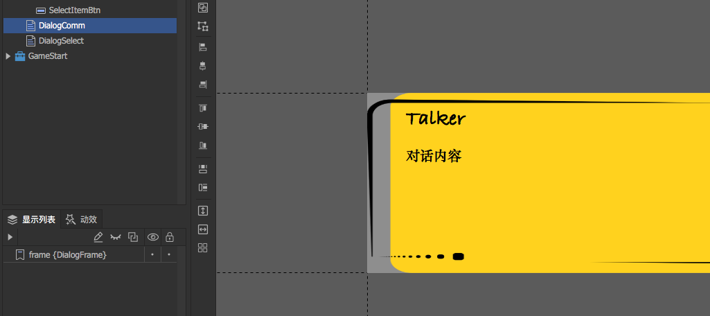- DialogFrame 是一个【标签】,是一个通用的对话框UI 效果