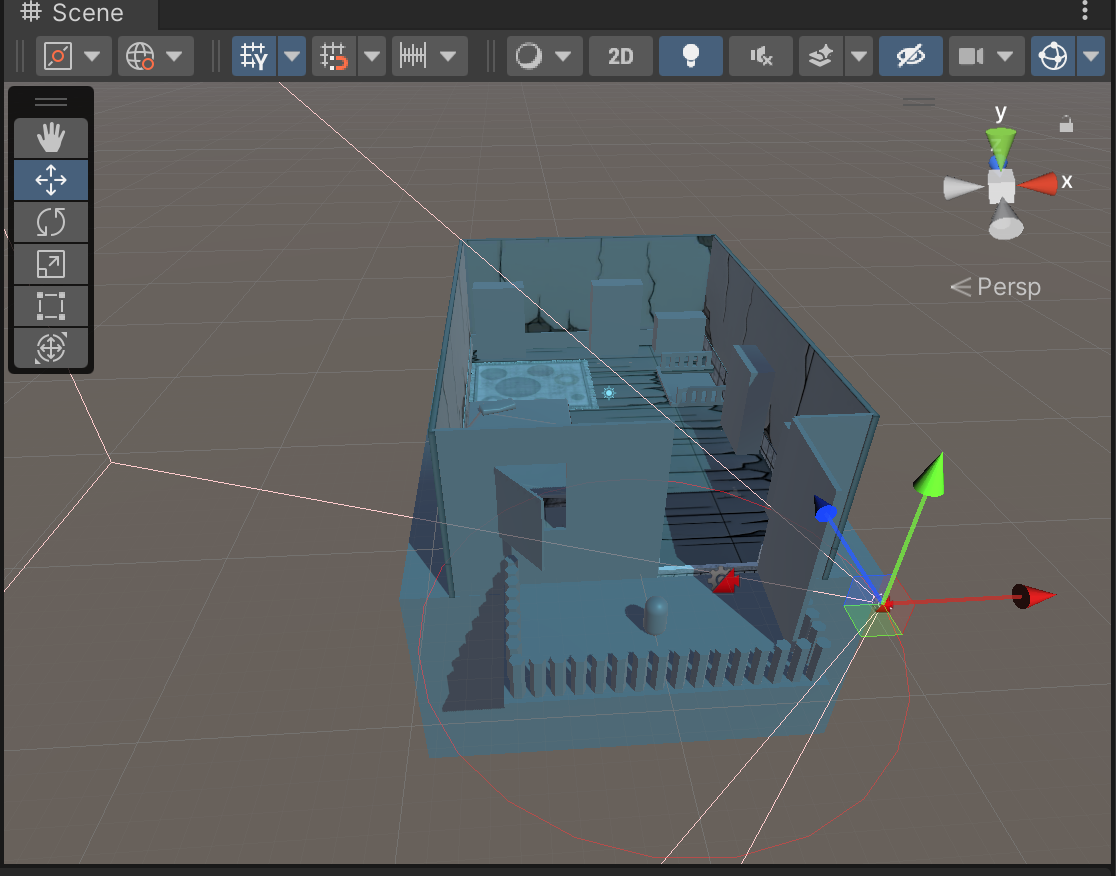 然后在Scene 窗口上,针对这个VirtualCamera 可以看到有一个红色圆环,Orbital Transposer(环绕相机)就会限制相机在这个红色圆环上移动