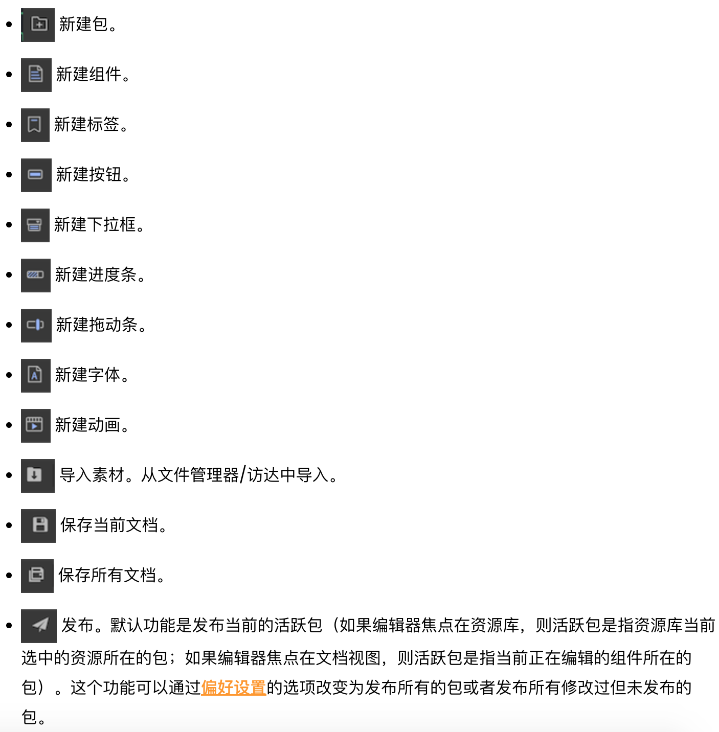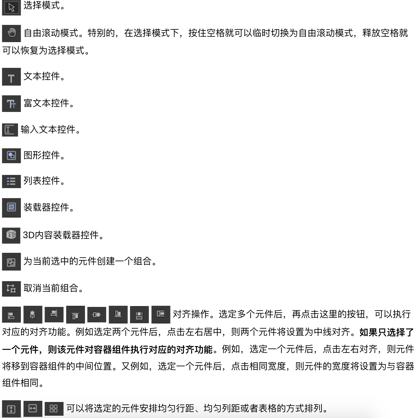 以下是直接对于官方文档的截图,方便我们理解每个控件的功能,方便我们在做UI 界面的时候选择合适的UI 控件