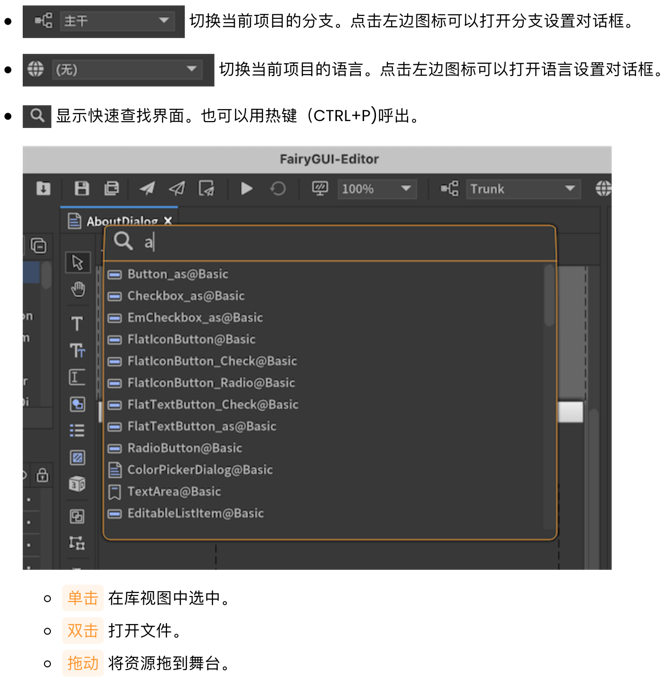 Fairy GUI 工具栏介绍