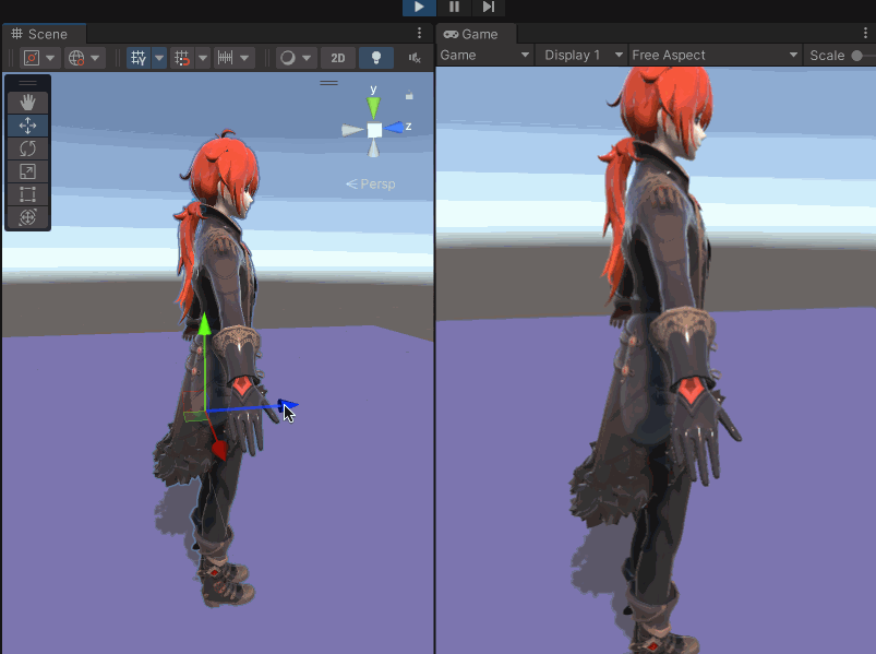 和上文一样,在661 x 423 的屏幕设置下;不同的点是只做了头发,没有做衣服,而且没有添加碰撞器,运行的帧率在60 FPS 左右。相比于BoneCloth 方式还是有明显的性能差距的