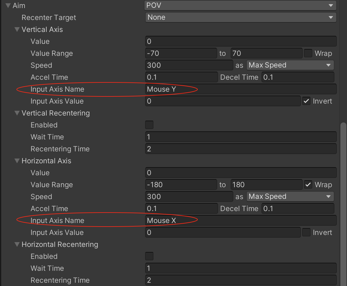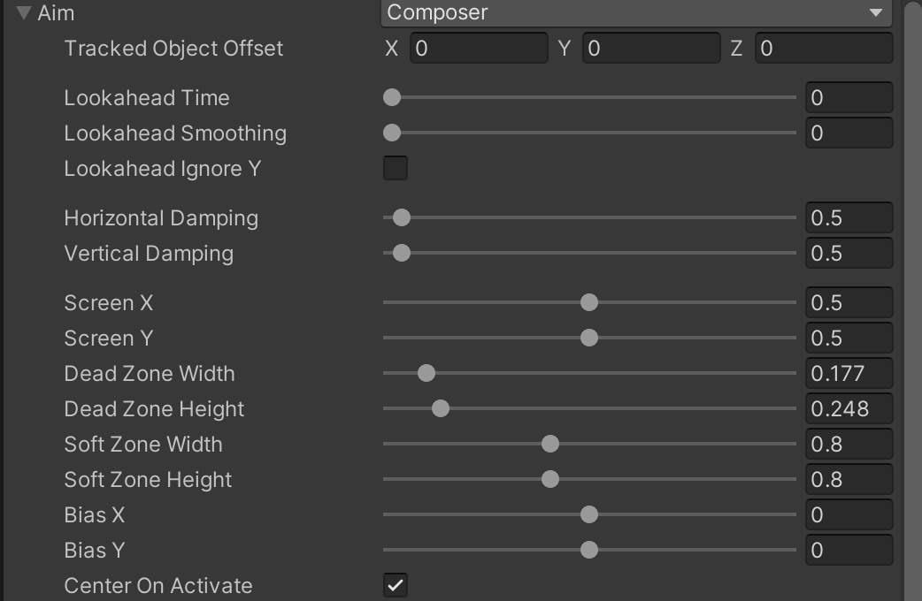 - Composer:默认模式,标准的瞄准模式,保证相机看向这个游戏对象