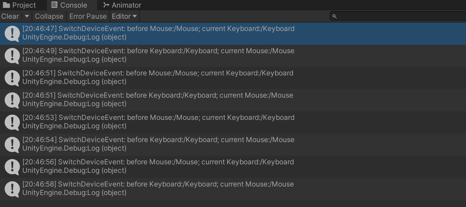 但是,onDeviceChange 只会在当前已经设定好的设别发生改变时触发,无法检测游戏运行时输入设备之间的切换