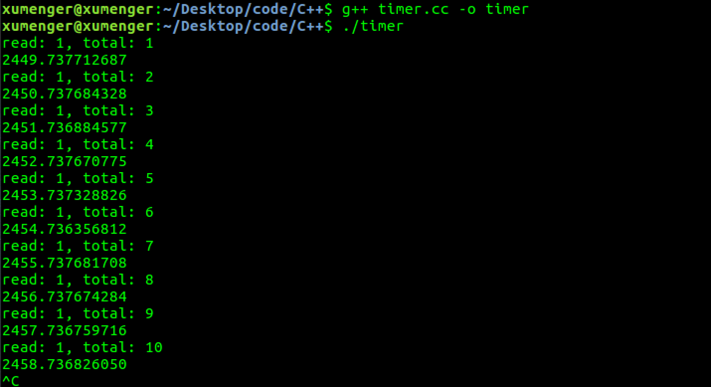 // 可以用read函数读取计时器的超时次数,该值是一个8字节无符号的长整型