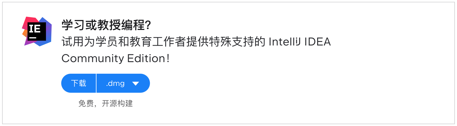 https://www.jetbrains.com/zh-cn/idea/download/#section=mac 可以选择下载免费的社区版本