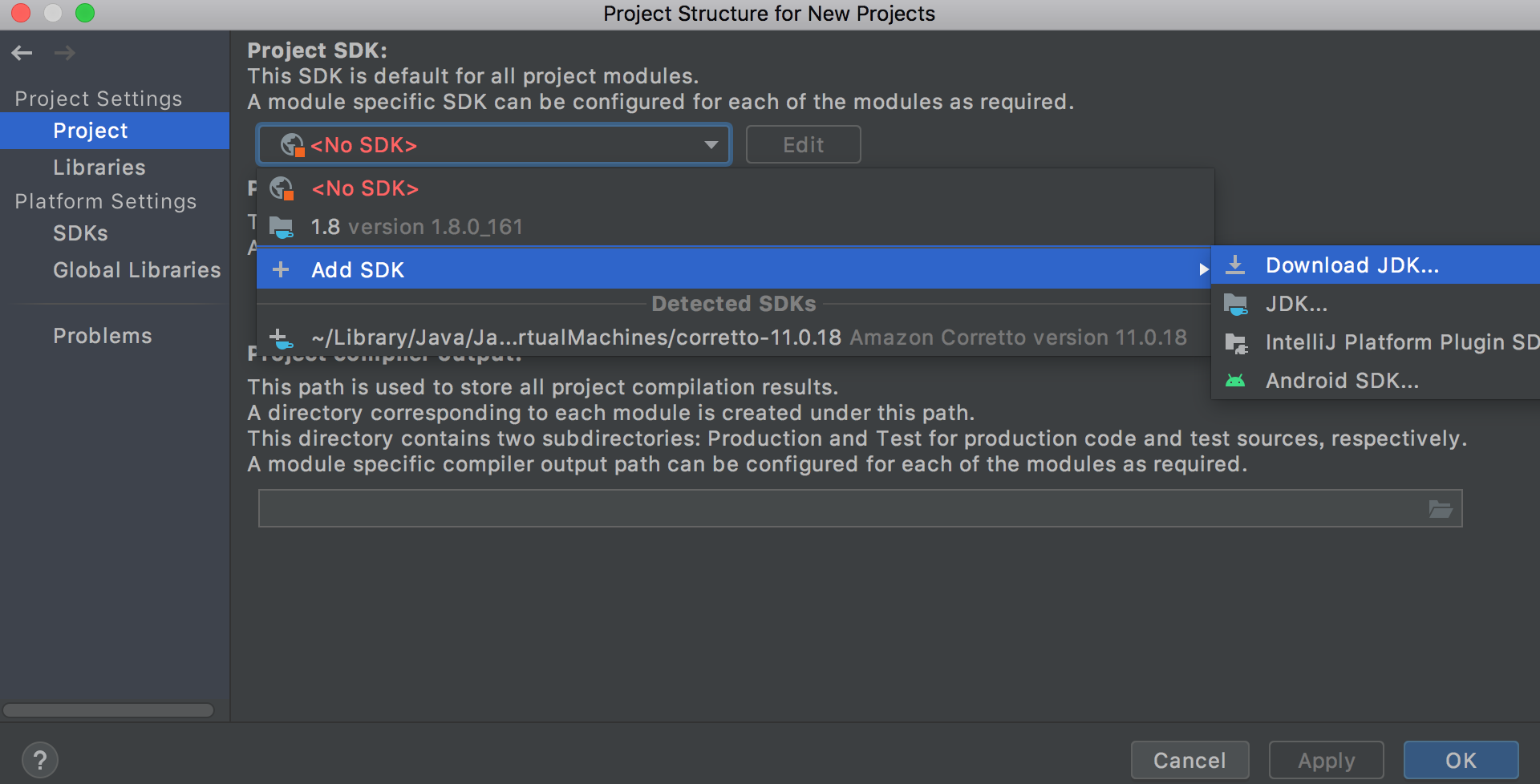 注意,2021 版本要求JDK 是 JDK11,否则无法正确配置IntelliJ Platform Plugin SDK,可以通过下面的截图直接下载jdk11