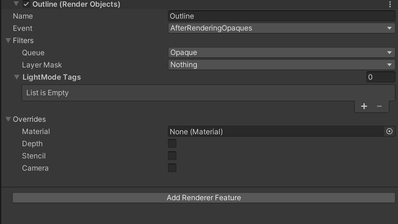 - Overrides:使用这个Renderer Feature 进行渲染时,这部分的设置可让我们配置某些属性进行重写覆盖