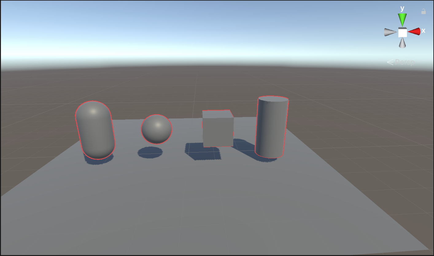 为场景中需要描边的物体设置Layer 为Outline,然后效果如下所示