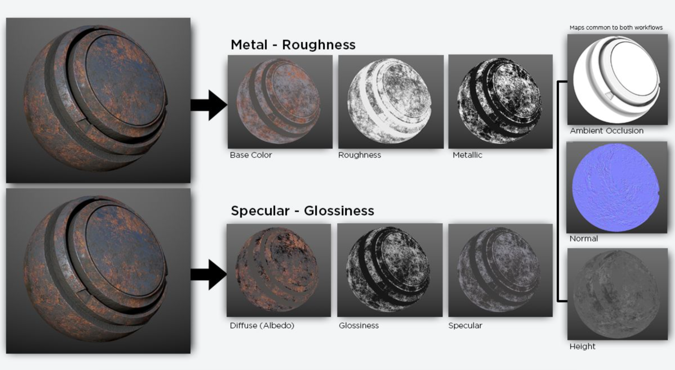 常见的PBR 工作流程是:金属/粗糙度工作流、高光反射/光泽度工作流