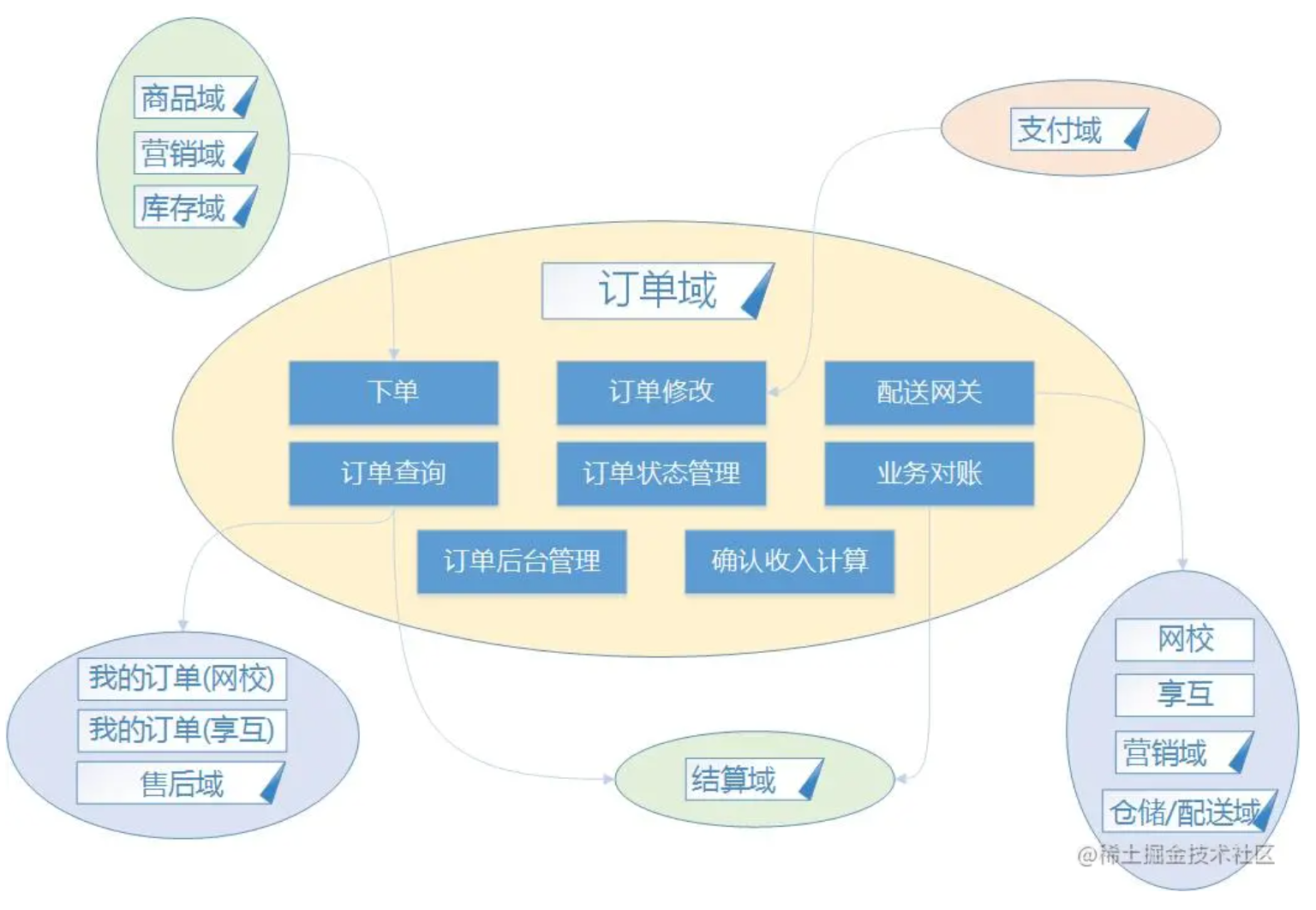 - 订单域:订单生成、订单查询、订单生命周期管理、订单业务对账等