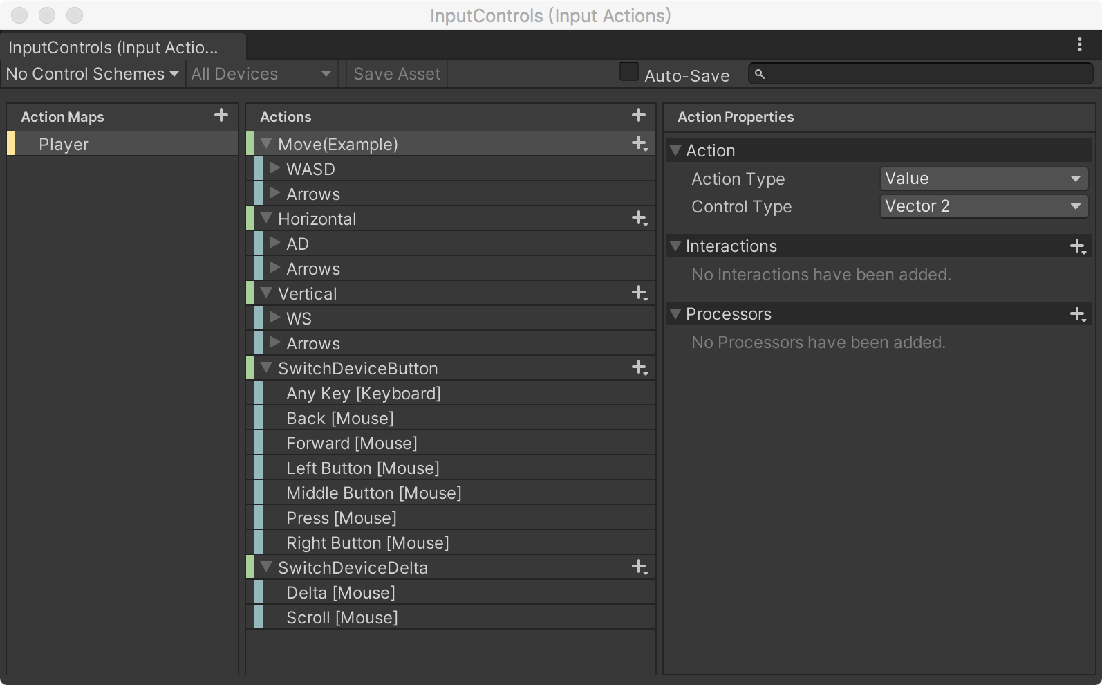 有这样的一个需求,希望为某个MonoBehaviour 在Unity 编辑环境下增加一个按钮,然后在开发环境下点击该按钮触发相关的逻辑,比如我要去遍历下面这个Input Actions 下面所有的Action